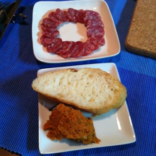 スパニッシュ食材店で購入したハムとチョリソーパテ。