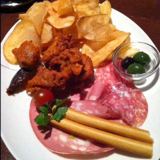 サイドディッシュ、上の2品は演奏開始前に食べ終えたので、ワインと山中千尋ピアノトリオのつまみに。
