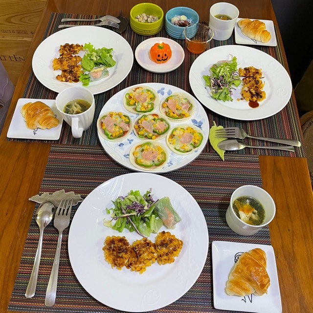 かぼちゃのろうそく飾りました☆野菜卵スープ、クロワッサン。