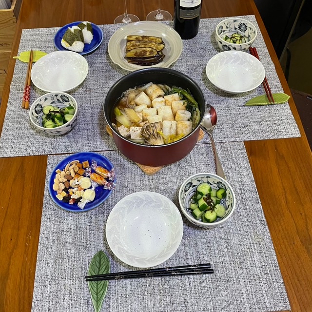 雪の舞う寒い一日だったので、あったまる!もへじ比内地鶏鍋の素を使用。