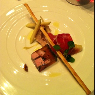 前菜、生ハムといちじく、豚肉のゼリー寄せなど。名古屋の駅ビル51階のレ....