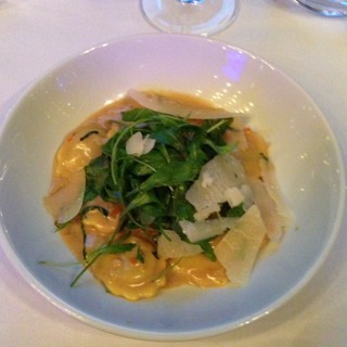 トリュフ入りラビオリ。今回も2人で3皿でお腹いっぱいで、デザートに辿り....