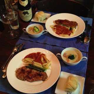 メインはバルサミコポークソテー。ポークは牛肉と違い焼き加減に失敗がな....