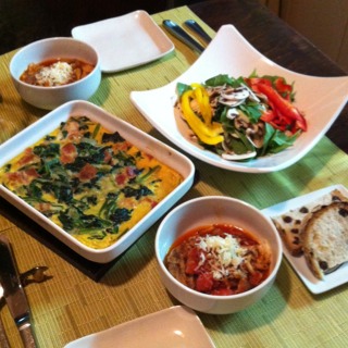 手前、トマト煮込みハンバーグ、えのきとエリンギもたっぷりと。
