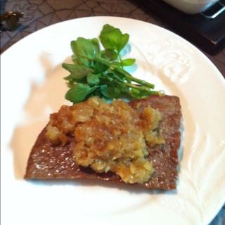 まぐろステーキ。下味に醤油、しょうがすりおろし、ゴマ油。トッピングに....