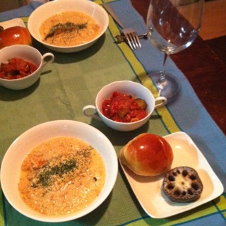 左、きのこソテー。下、お友達が焼いたノアレザン(ぶどう&クルミパン)。