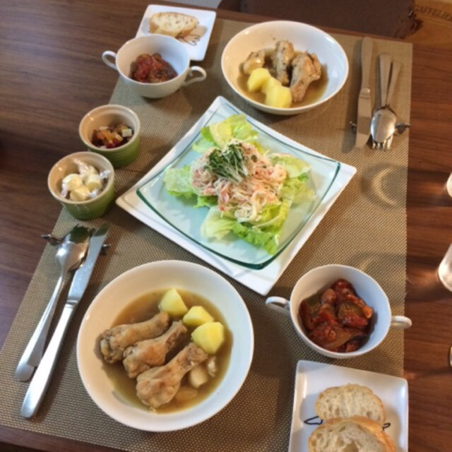 珍しく鶏手羽を使用。。。鶏手羽やわらかいけど、フォークとナイフでは若....