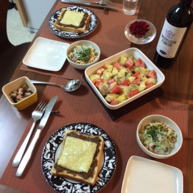 なすとカボチャのミートソース焼き。ちとカボチャが多過ぎたかな。
