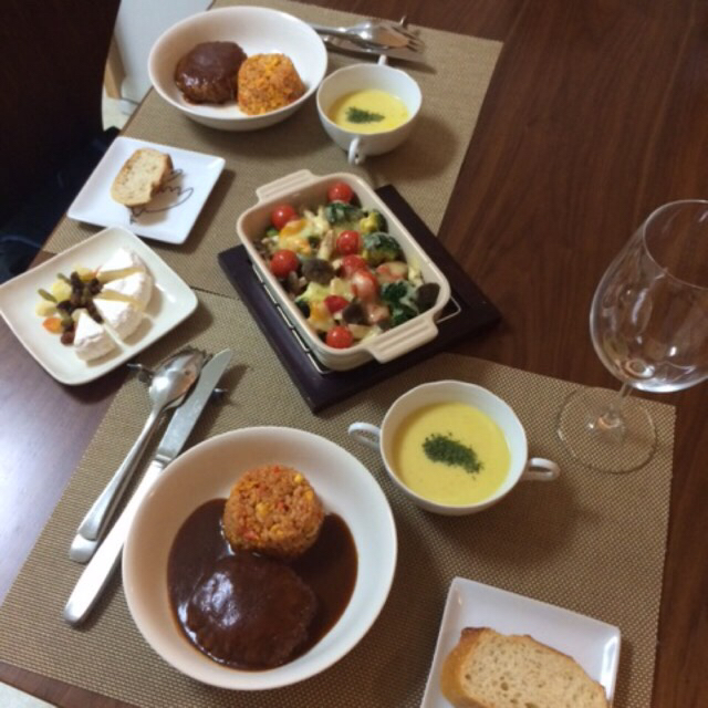 ハンバーグにチキンライスを型抜きしたものを添えました。
