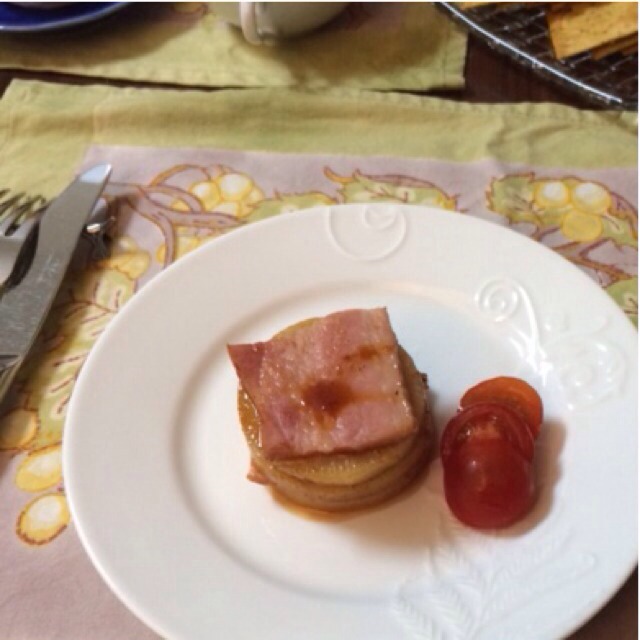 大根とベーコンステーキ。大根とベーコンを3段重ね。