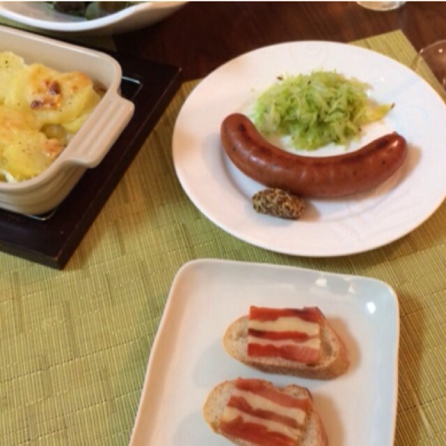 ソーセージとパンに載せてる鮭とチーズのミルフィーユは両方ともデパート....