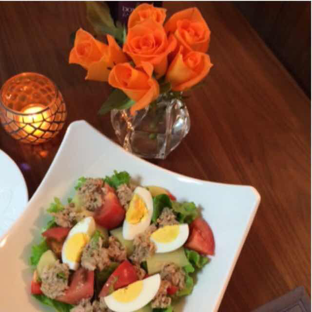 ニース風サラダ。メインが鶏肉とソーセージのカスレ、と南仏料理なのでサ....