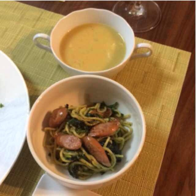 下、ジェノベーゼ焼きそば。焼きそば麺を消費したかったのでパスタ代わり....