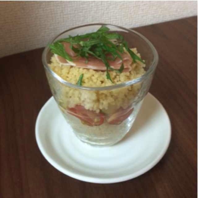 クスクスとサラダのグラス仕立て。見た目も夏向きでgood。クスクスは少量....