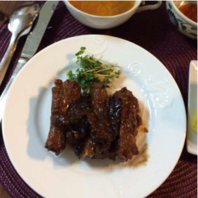 豚スペアリブ プルーン煮。黒ビールで煮込んだが、最近は黒ビールが置い....