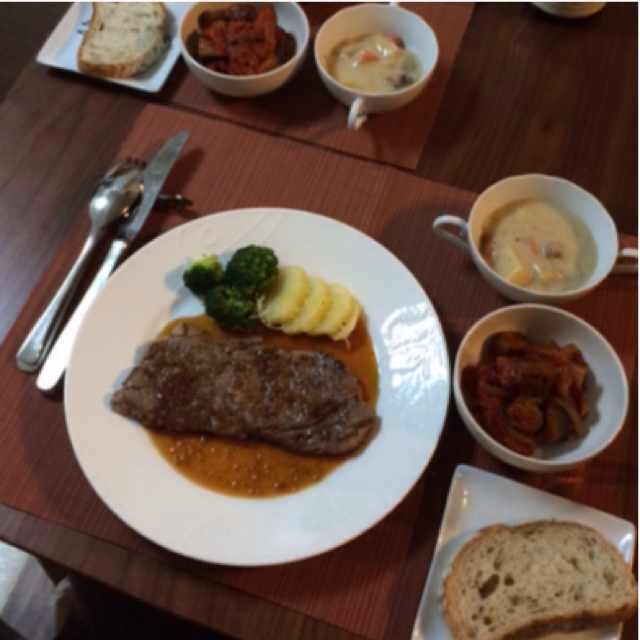 牛ステーキ。OGだけど、脂身が少ないので、我が家では気に入っている。