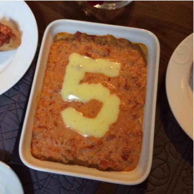 カニのトマトクリームドリア。スライスチーズで5を描いてみました〜