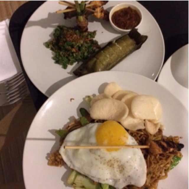すべてインドネシア料理。上Sate campurチキン、ポークの串焼き、Sticky ....
